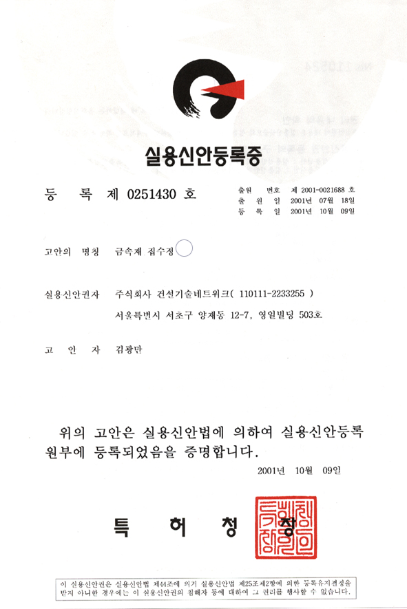 Barona Steel Sump – New Technology No. 452 (Ministry of Land, Transport and Maritime Affairs)