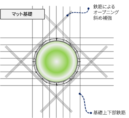- ·基礎に作用するモーメントおよびせん断荷重はマット基礎が負担
