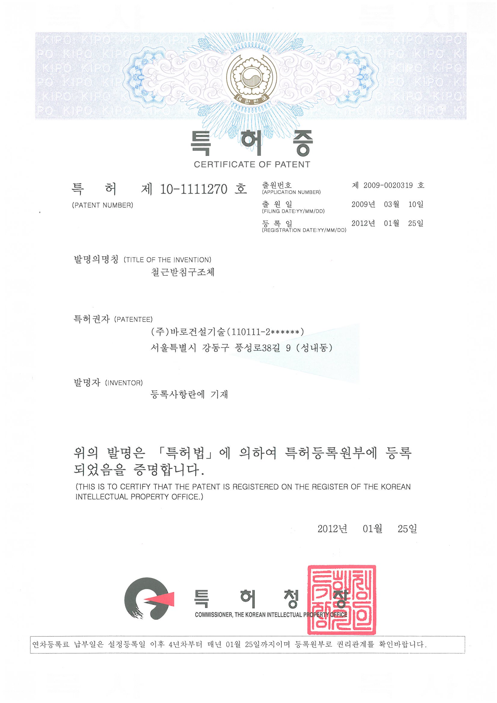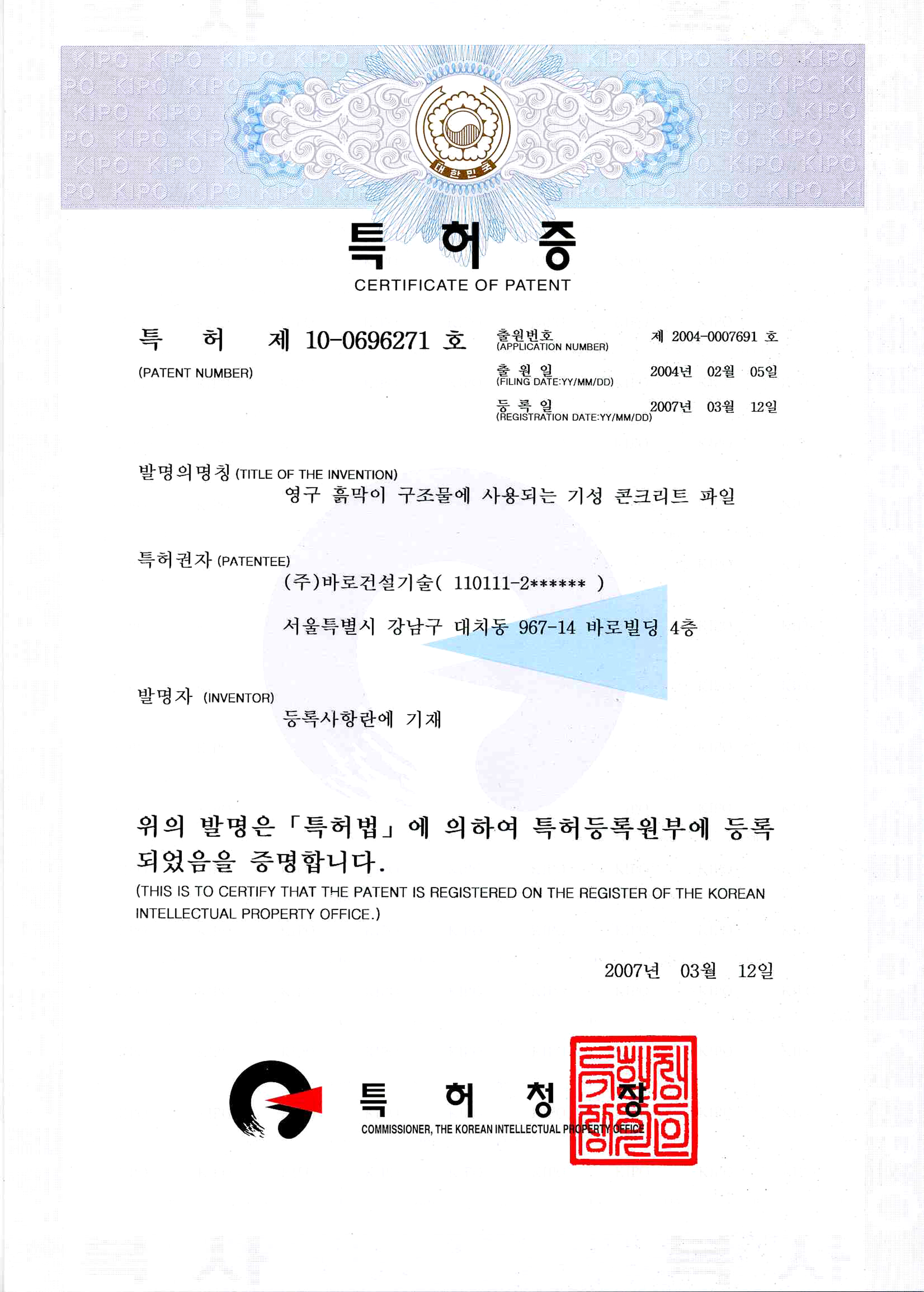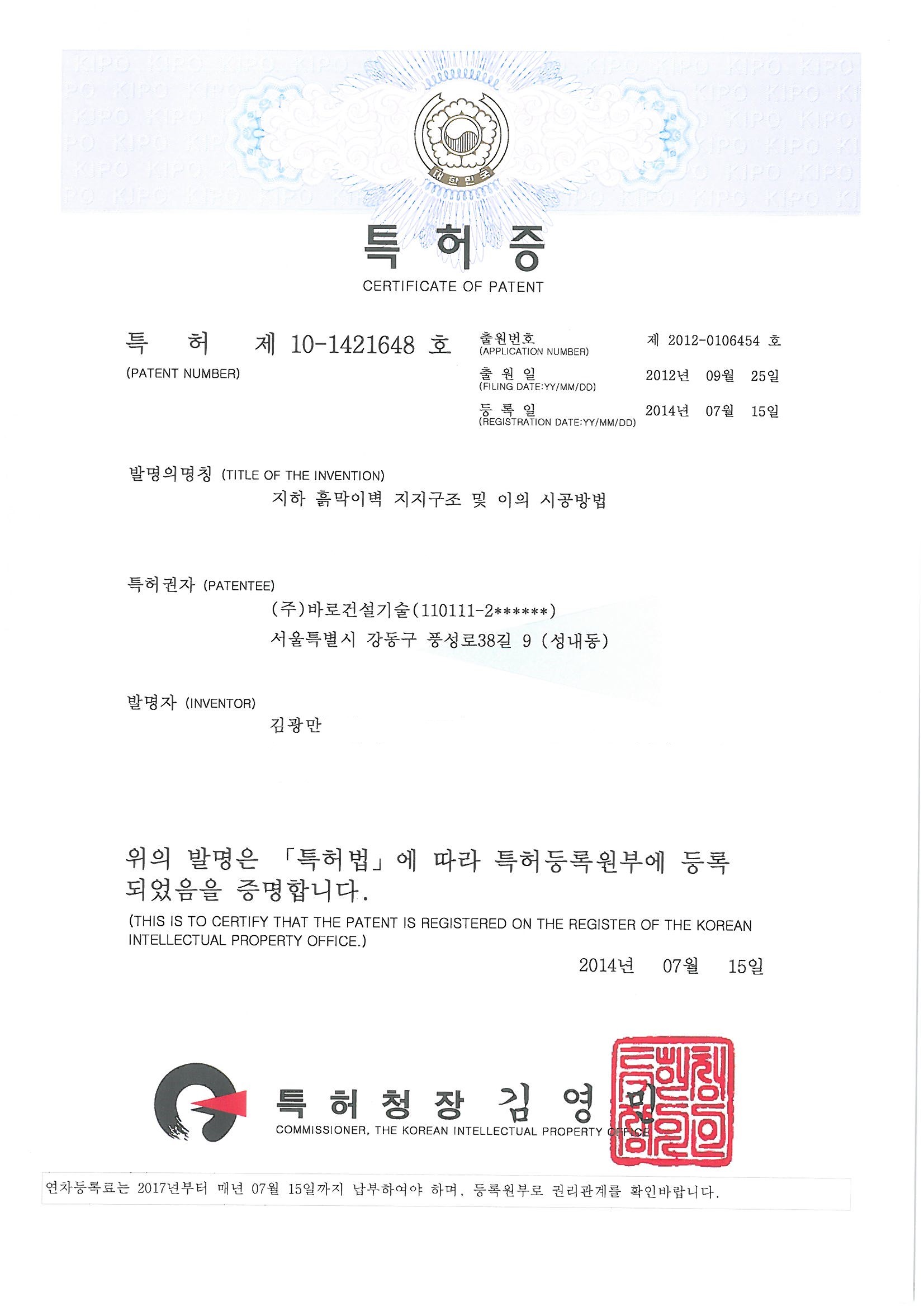 Barona Foundation Reinforcement Material – New Technology No. 548 (Ministry of Construction and Transportation)