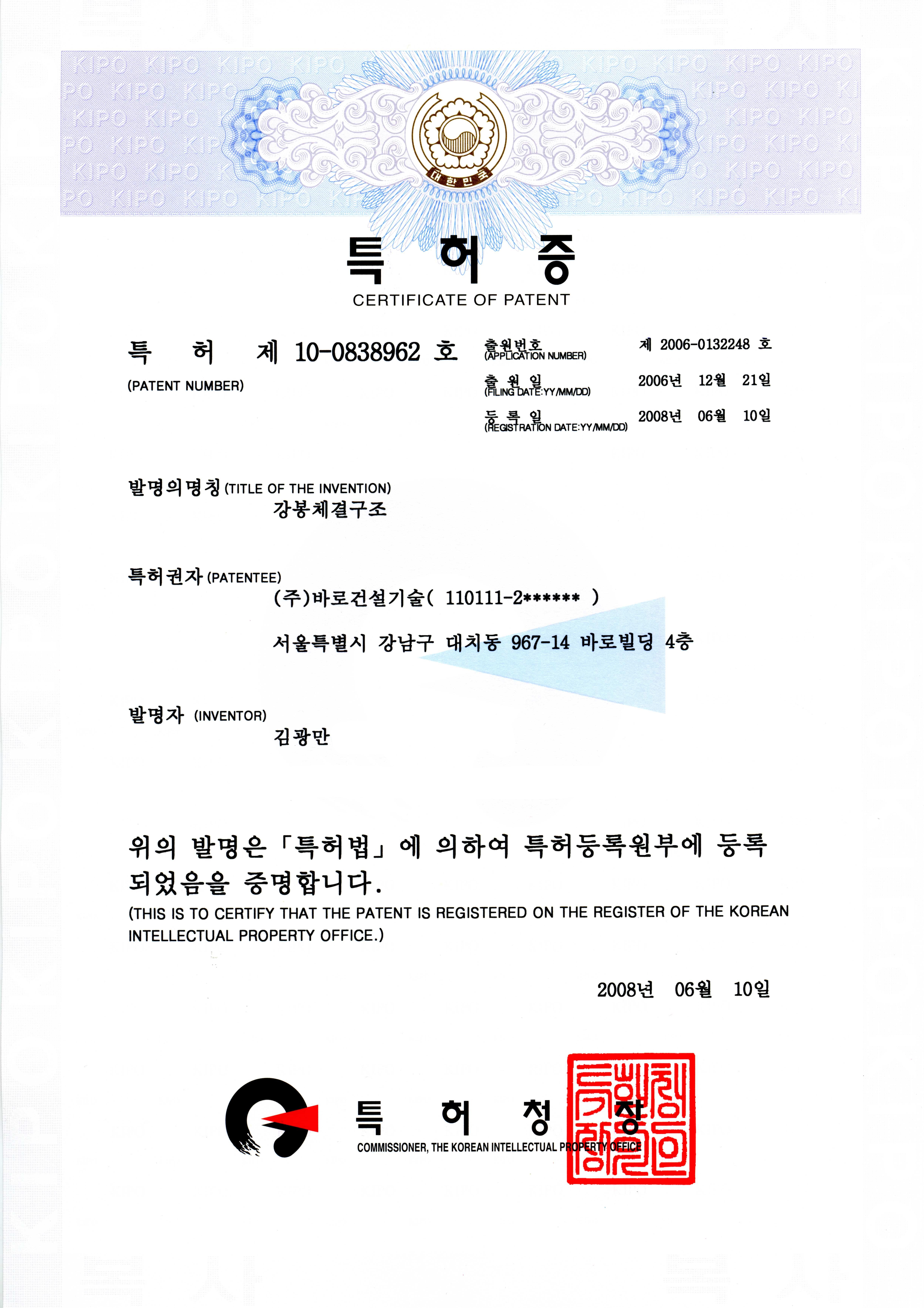 Barona Large-Diameter Rebar Coupler – New Technology No. 569 (Ministry of Land, Transport and Maritime Affairs)