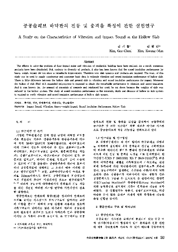 Experimental Study on Vibration and Impact Sound Characteristics of Hollow-Core Slab Floor Systems